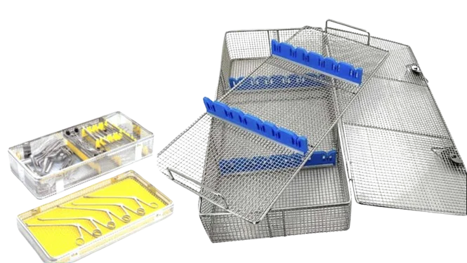 Our Laparoscopy Sterile Container is designed to provide a secure and sterile solution for storing and transporting laparoscopic instruments. Made from SS316 stainless steel, electroplated for enhanced corrosion resistance, this container ensures durability and longevity, even in demanding medical environments. Featuring specialized holders for each instrument, the container offers added safety by securely positioning the instruments and preventing any movement that could lead to damage. Available in single-layer and double-layer models, this container is ideal for containing a complete set of laparoscopic instruments. The wired mesh design allows for excellent air circulation, ensuring the instruments remain sterile while being properly ventilated. Lightweight yet sturdy, it provides the perfect balance of protection and convenience for medical professionals.